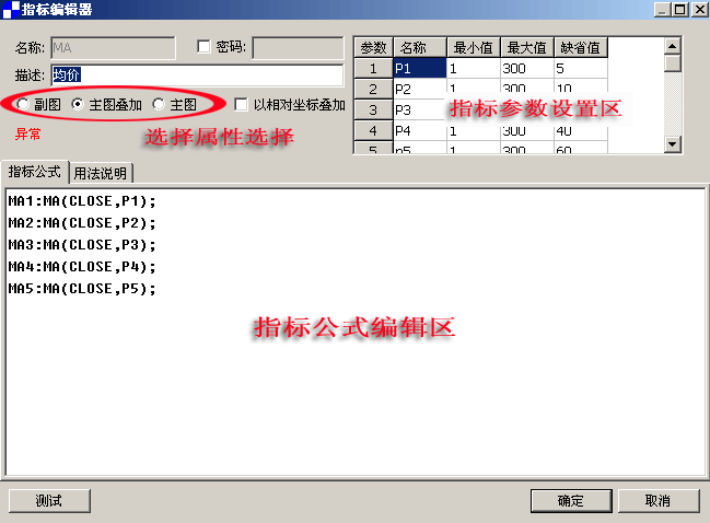5、指标的属性分为“主图”、“附图”、“主图叠加”三种。如图2-7-4
