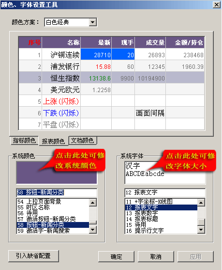 博易大师根据不同用户的需求,特为用户提供了系统颜色与字体大小的修改方案。