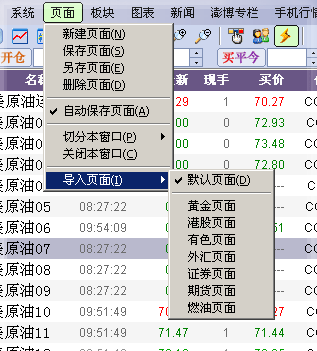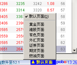 博易大师支持以下常用页面,用户可以使用鼠标选择以下相应的页面,