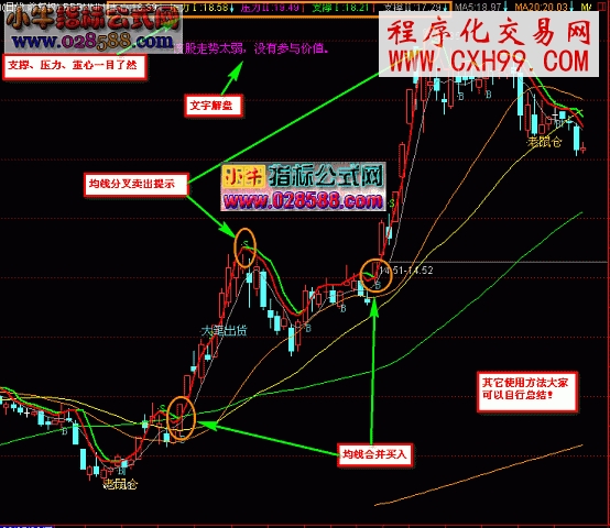 一个很不错的主图指标还有文字解盘哦!(目前我在用的)