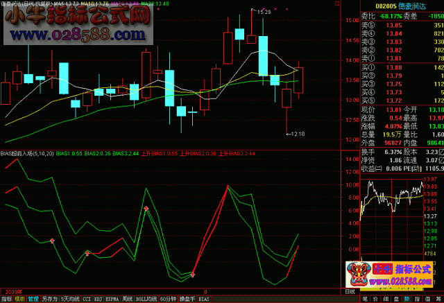 上升BIAS2:IF(BIAS2>ref(BIAS2,1),BIAS2,DRAWNULL),COLORRED,LINETHICK2;