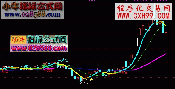DRAWTEXT(减仓,HIGH*1.02,'←减仓'),COLORCYAN;
