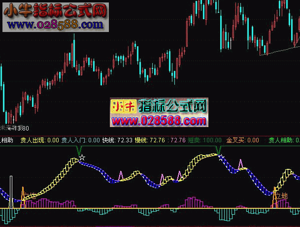 贵人出现:IF(A1,50,0),COLOR00FFFF,LINETHICK2;