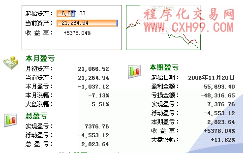 我的交易记录跟资金流水都没问题就小财神神无法识别配股......导致收益率不准确,初始资金好象也有问题,说下小财神好处吧,它统计出了我进入股市至今实现盈亏7376.76浮动盈亏-4553.12这是2011年亏的,到目前盈亏2823.16这几个数据我还是相信的,因为我曾经手工大概算过