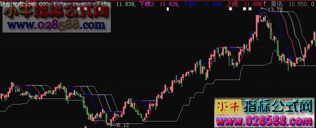 下线3:HHV(FORCAST(CLOSE,10),10),colorFF00FF;