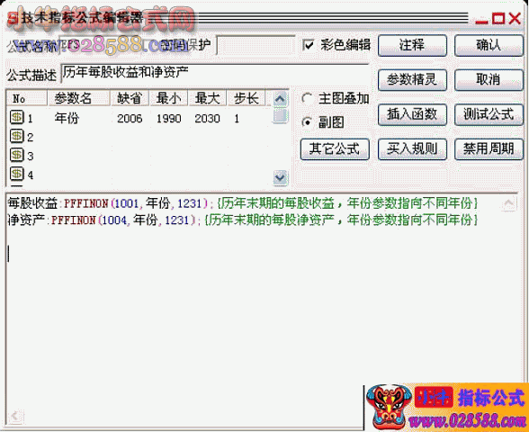 净资产:PFFINON(1004,年份,1231);{历年末期的每股净资产,年份参数指向不同年份}
