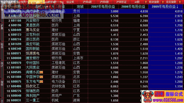 页面上会显示出EPS 一列,整列的内容显示的是06 年的每股收益。我们可以右击EPS,