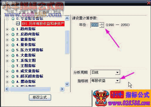 在任一标题栏右击,选择技术指标,找到我们刚才编写的公式,输入年份,然后选择下