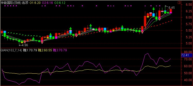 输出跳3:收盘价-LC和0的较大值的N3日[1日权重]移动平均/收盘价-LC的绝对值的N3日[1日权重]移动平均*100