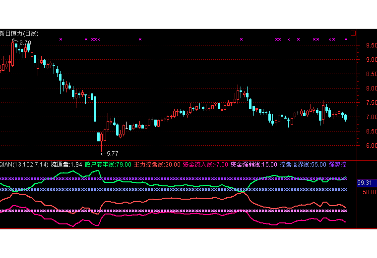 输出强势控盘线:75,COLORFF3399,线宽为2,CROSSDOT