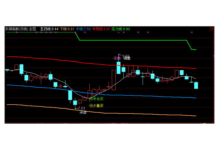 半赋值:XL6 AND 五日线<=中线 AND 收盘价>=下线