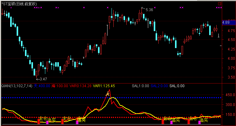输出SAL1:VAR1上穿VAR0 AND VAR1>250