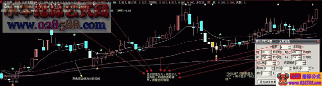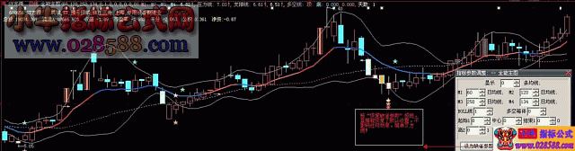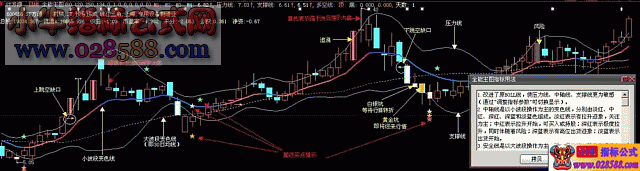 到现在,成功率是70%左右,故只能作为参考)。这个主图指标的最大特色个人认为比较全面,几个主要指标都可自由切换而不影响整体的显示,各提示图标和指标线的色彩我