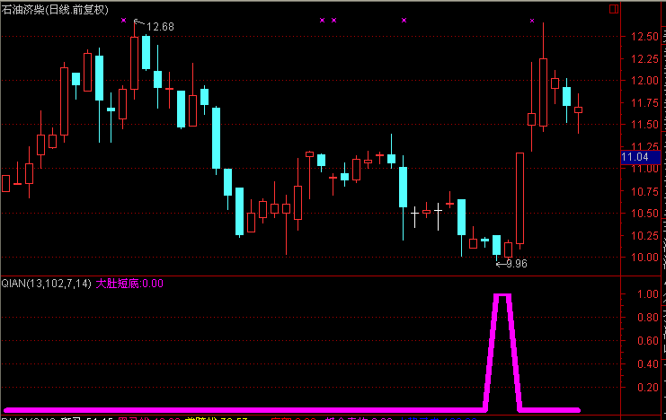 大肚短底:低点=L AND ((C-L)>(0-C) OR (O-L)>(C-O))LINETHICK6,COLORFF00FF;