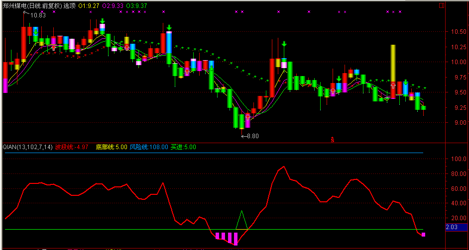 底部买赋值:2日内波段线的最低值=8日内波段线的最低值