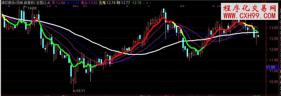 如果五鬼<良心AND五鬼>=财ANDP1>P3,返回五鬼,否则返回无效数,COLORFF00FF,线宽为4