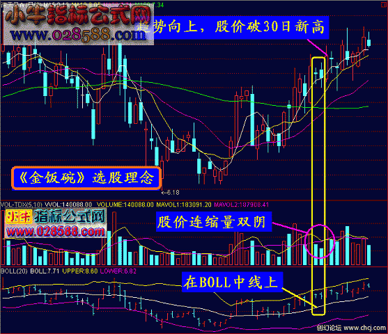 《金饭碗》选股理念是:一看趋势,二看发力,三看度量;若再找到“(热门)龙头”股,就找到“金饭碗”!(见图)