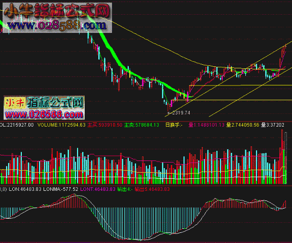 生死线,并调头向上股价进入强势。红箭头处全面几天快速缩量买入。股价最低处有绿块,注意股价再次启动。