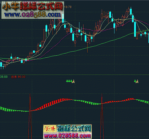 出击:IF((CROSS(CC,CC1) AND (CC1 < 顶) ),80,0),COLORRED;