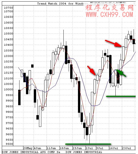 再来看看使用4天与9天移动平均线结合的一场惊心动魄兼白忙一场的交易。