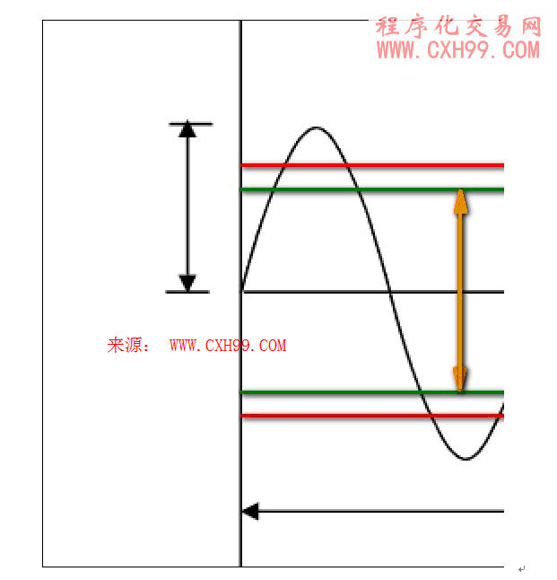 现在假设这是一个波段或长线的交易策略,似乎勉强可以接受这样的获利与亏损比率。可是当我们设计的如果是当日冲销的短线策略时,这个橘色线的长度将被严重的缩小;甚至可能趋近于零。为什么会有这样的可能?因为实际生活里我们不可能遇到这么「乖」的价格行为,往往是随机出现波幅大小不一的运动。但别忘了我们这些红绿所占的距离却几乎不会跟着改变,滤除不合期待的波幅以免执行无意义的进出,也是可以产生类似压低成本的效果;讯号的过滤技巧便成为策略设计的显学。