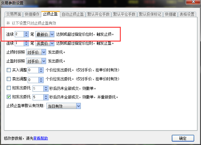 本帖最后由 shouze001 于 2015-3-23 11:02 编辑在已经设置“如发出委托2秒后仍未全部成交,则撤单,并重新委托”的基础上,撮合出开盘价后至开盘前这段时间(非交易状态),止损会被激活并在非交易状态下发出止损单,之后会报错,且无法自动撤销,使得止损功能处于假死状态,只能手动取消;你们的日志文件夹tradelog里只能保存之前9个交易日的交易日志,且扩展名是phl,无法用记事本打开,使得已经看不到那天的报错日志了;在闪电王中,就算设置了“非交易时段下单时,等到开盘自动发出”的功能,止损功能同样会在非交易时段被触发并下单再报错,就是说这功能只对普通下单有效,对于止损功能仍然没有解决;在闪电手中,连这个功能都没有,就更别提解决止损单在非交易状态下单的问题了;