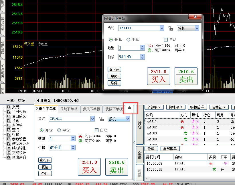 一键下单面板建议增加下单版弹出选项,同时建议改进位三键下单的方式更加方便
