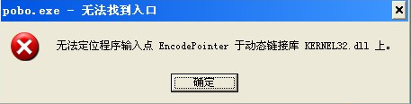 无法定位程序输入点EncodePointer于动态链接库KERNEL32.dll上? [博易POBO]