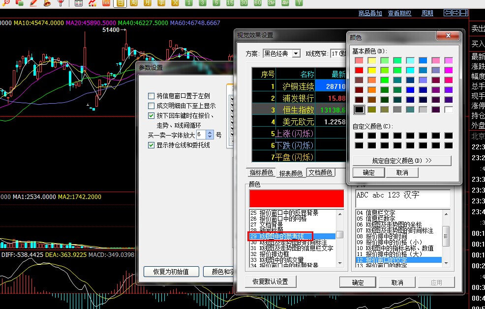 5.2.4版本的参考线没有以前的好,以前的不会让均线和K线柱体变形,还可以改颜色。博易技术人员: 您指的变形具体能截图给我看一下吗?另外,参考线的颜色是可以修改的,方法:在K线图上右键属性/颜色和字体/K线图中的参考线,如图: