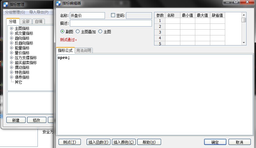 本帖最后由LUWANJU于2014-11-2808:54编辑您在K线页面上点击右键技术分析,指标管理,点击新建,之后您新建一个指标函数,您点击下面的插入函数点击左边的行情,右边会出现相应的函数公式。如图:1是结算价指标,图2是开盘价指标