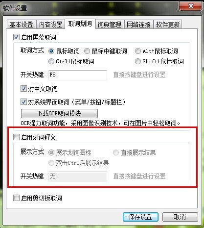 博易技术人员: 请问您是否开启了有道词典,如开启了有道词典,建议先退出有道,在有道软件设置窗口,取消勾选“启用划词释义”。