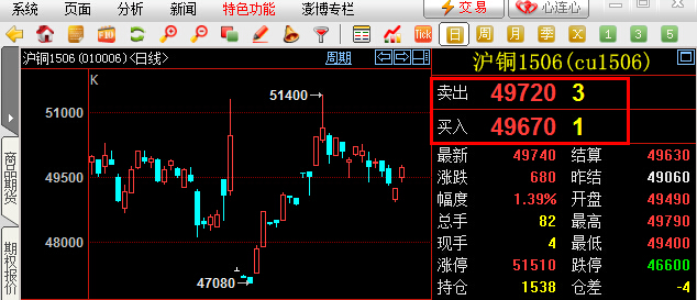 博易技术人员: 博易大师行情软件在信息窗口里,“卖出”后面显示的价格是卖一价,即该合约当前最低申报卖出价,“买入”后面显示的价格是买一价,即该合约当前最高申报买入价,如下图所示: