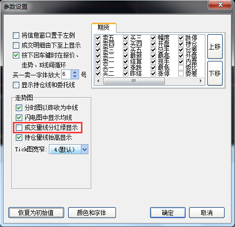图一操作方法:在分时图右击鼠标,选择“属性”(如图二),在弹出的参数设置窗口中勾选“成交量线分红绿显示”(如图三),点击“确定”。