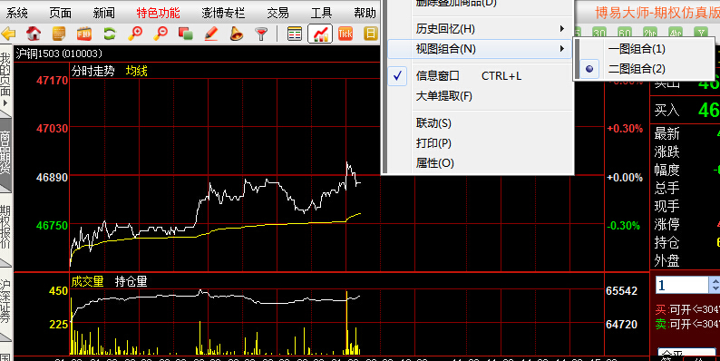http://210.14.65.65:13168/foru...3D861您好,您是希望在分时图下面添加成交量跟持仓量的指标么?您在分时图中右击鼠标——视图组合——两图组合就...