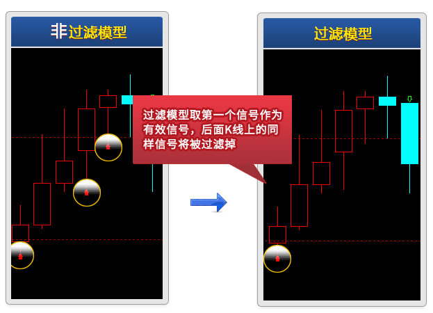 答:对于不需要进行加仓操作的交易者,在策略执行的时候希望开仓后的下一个动作是平仓,如果是加减仓模型,那么当模型中多个开仓条件连续满足时软件会连续开仓,无法保证开仓后的下一个动作是平仓。一开一平信号过滤模型本身自带的过滤机制可解决这个问题,软件会取第一个信号作为有效信号,后面K线上的同样信号将被过滤掉。(来源 www.cxh99.com )