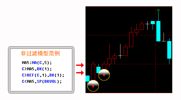 例: CLOSE>OPEN,BK(1); CLOSE<OPEN,SP(1); TRADE_AGAIN(5); 注:有TRADE_AGAIN(N)函数的模型支持同一指令连续发,因此能够实现加减仓