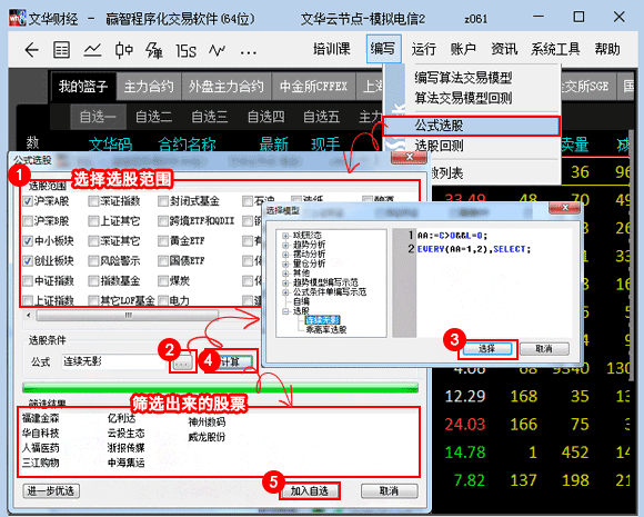 文华股票程序化之公式选股[文华财经公式]