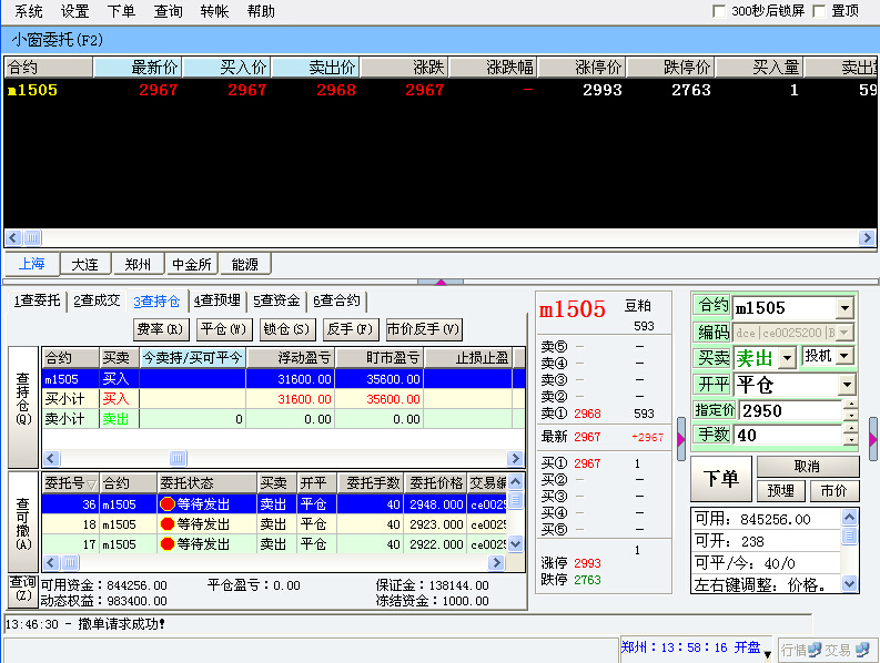 我注册了个模拟帐户搞商品期货,已经赚钱了,想要平仓,居然平不了?什么情况?发了几次单都提示等待发出,我用的是快捷平仓也不行?事后等半天没结果我只好撤单了!