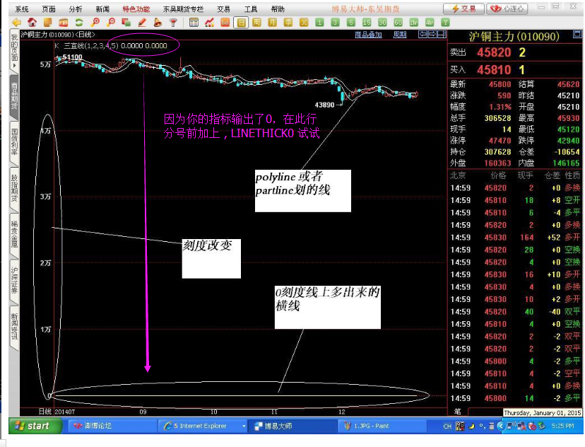 本帖最后由 wireyou 于 2015-1-1 17:38 编辑partline或者polyline划线为何会改变坐标刻度?而且0刻度上还会划一条直线,导致k线高度缩小,不容易看。请高手帮忙解决,谢谢!