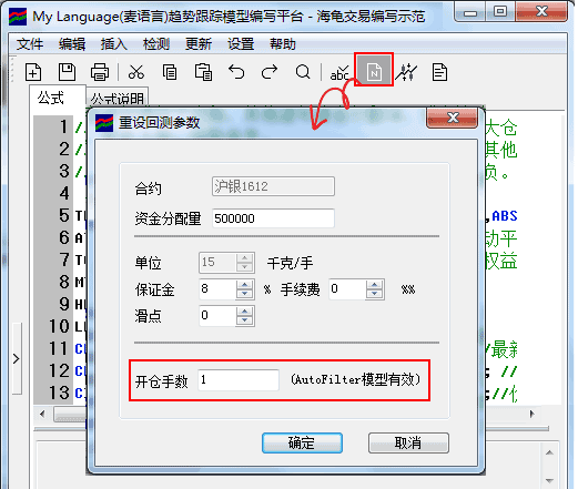 答:开仓信号:下单手数按照参数设置中的默认开仓手数执行(如下图所示)。