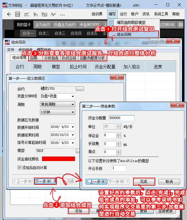 2、组合回测操作步骤: