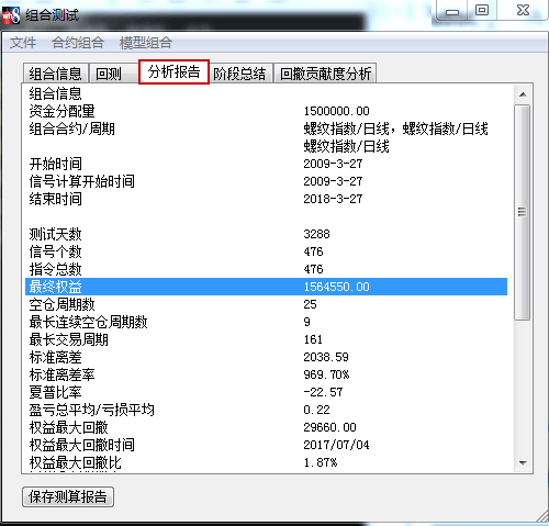 多模型多合约组合回测分析总盈利