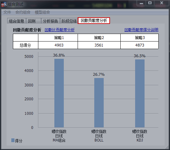 如下图,组合回测提供交易组合的回撤贡献度和回撤比贡献度分析,直观展示模组在组合中的贡献度大小,投资者可以对得分较低的模组进行调整,提高交易组合的整体收益和抗风险能力。