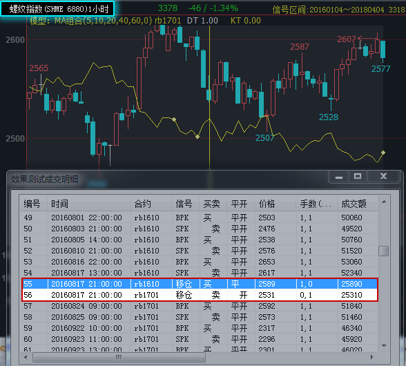 (2)该函数写为TRADE_OTHER('XX主连')时,可以加载到商品指数上,实现换月移仓。