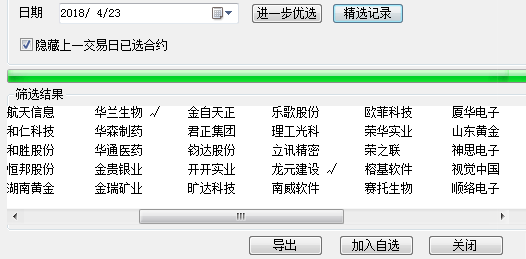 第二步:选择分析日期,对该天的合约进一步优选,选出最符合当前交易策略的合约,检验选股公式的效果,如下图。
