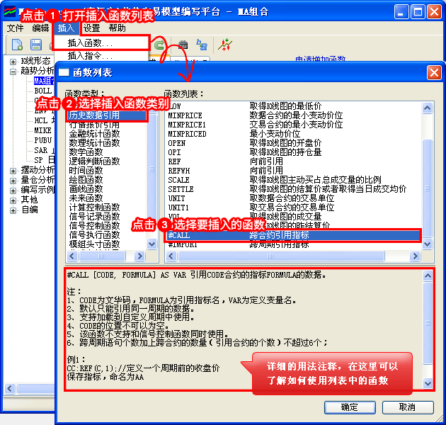 答:可以通过#CALL跨合约函数来实现,如下图所示,在模型开发平台中点击【插入】—>插入函数,在“历史数据引用”里找到#CALL函数,具体使用方法请参考“插入函数”里的函数说明。