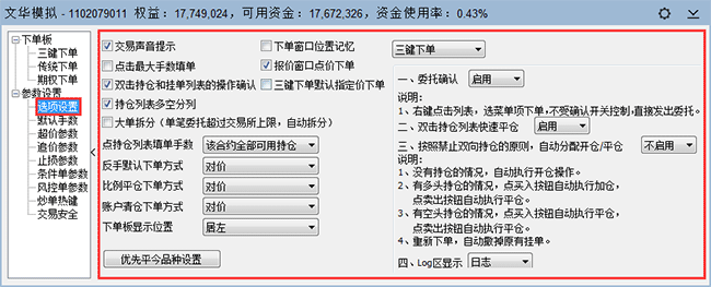 文华WH6交易界面左侧【选项设置】中各个项目都是什么意思?[程序化新手]