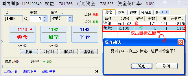 (3)双击持仓和挂单列表的操作确认