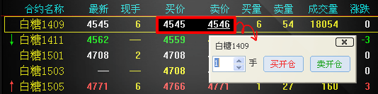 答:勾选后,点击报价列表的买卖价位置,会弹出小下单(例如下图所示),点击“买开仓” 、 “卖开仓”按钮,以委托当时的买价、卖价发委托;不勾选,点击不会有任何反应。