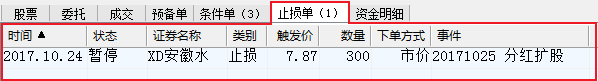 答:股票合约止损止盈单,在股票除权除息当天早上开盘前会被暂停,需要用户手动处理。因为除权除息后,股票价格会减少很多,止损止盈单很容易被触发。除权除息日期最多前7天,软件会在登录交易后和止损单列表事件列显示,用户可以看到事件提醒。( WWW.CXH99.COM )